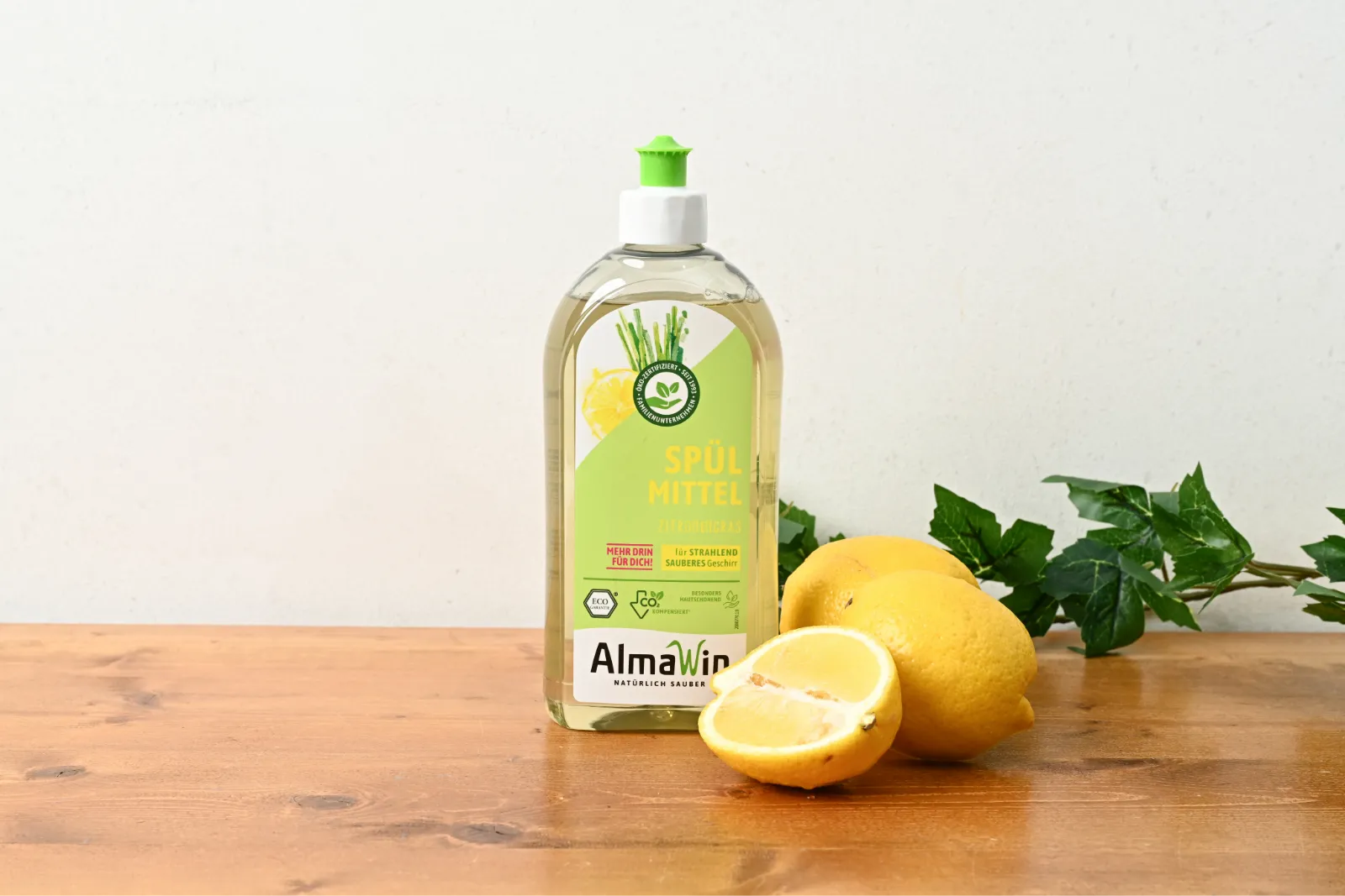 界面活性剤(18.0% ラウリルグルコシド、ラウリル硫酸ナトリウム)、工程剤(水、塩化ナトリウム)、安定化剤(アルコール)、増粘剤(グリセリン)、キレート剤(乳酸)、香料(レモングラス精油、レモン精油、ユーカリ精油)、刺激緩和剤(小麦プロテイン)